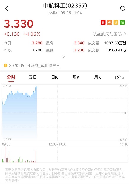 智通财经APP获悉,中航科工(02357)发布公告,根据2019年股东周年大会的投票结果授予公司董事会一般性授权购回不超过6.25亿股H股,即最多相当于公司截至相关决议案通过当日已发行H股总数的10%。截至发稿,中航科工涨4.06%,报3.33港元,成交额3753.41万港元。
