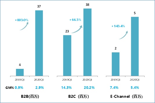 IPO以来,1药网一直在平衡业务扩张和盈利,业务增速显著高于成本增长,规模效应初显,盈利水平持续改善。根据财报,1药网一季度B2B、B2C、E-Channel业务营收分别为12.79亿元、1.91亿元、9902.8万元;毛利分别为3721万元、3848万元、537万元;利润率上除了新兴的电商服务有回调之外,主要的B2B、B2C盈利能力都有大幅提升。
