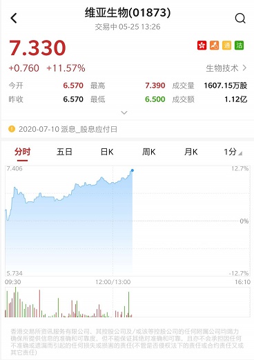 智通财经APP获悉,维亚生物(01873)股价在过去两周上升超过60%。摩根大通发表报告指,集团股价大幅上升主要由于潜在的收购,推动下游业务扩展至CDMO/CMO服务等因素。该行将其目标价由5.5元升至7.5元。截至发稿,维亚生物涨12.02%,报7.36港元,成交额1.13亿港元。