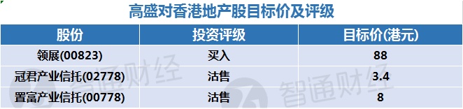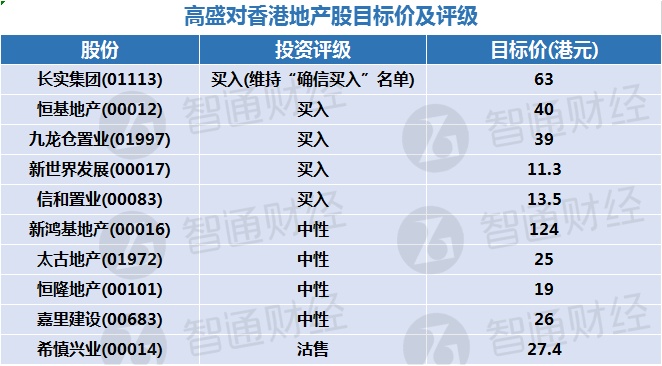 智通财经APP获悉,高盛发表报告,列出对香港地产股最新目标价及评级: