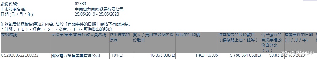 智通财经APP获悉,联交所最新资料显示,5月21日,中国电力(02380)获控股股东国家电力投资集团有限公司增持1636.3万股,每股作价1.6305港元,总金额约为2667.99万港元。智通财经APP获悉,增持后最新持股数目约为57.89亿股,最新持股比例为59.03%。