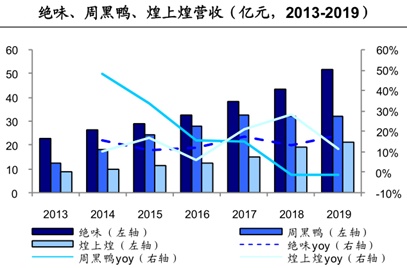 面对业绩下滑明显以及激烈的行业竞争,周黑鸭于2019年开放了特许经营模式。公司于2019年财报中明确表示,将商业模式升级为“直营+特许经营”的复合模式,以适应市场环境的变化和满足全国扩张的需求。截至2019年底,公司已陆续在4个城市签约3家特许经营商,其中5家店已投入运营,2020年会按照既定计划加快推进特许经营业务的拓展。不过,相比于绝味、煌上煌凭借成熟加盟模式的快速扩张,刚刚下放特许经营的周黑鸭还需要在此领域摸索一段时间,公司想要真正跟上前两者的扩张速度和质量,势必还需要一段不短的时间。