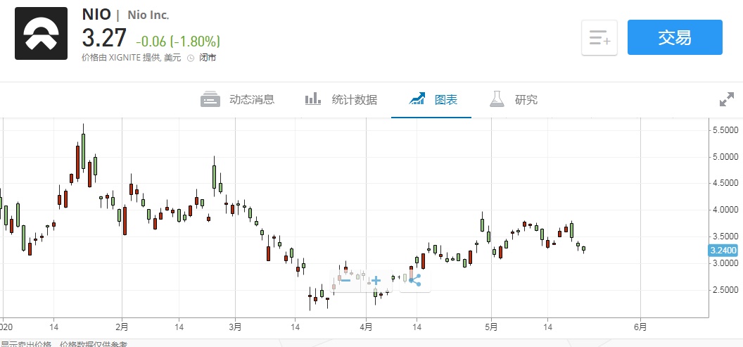 智通财经APP获悉,5月26日,蔚来(NIO.US)盘前股价大涨,截止北京时间16:43,涨6.42%,报3.48美元。