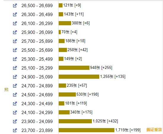 智通财经APP获悉,截至5月26日,恒指最新的牛熊街货比例27:73。摩根恒指牛熊证街货分布图中的数据显示,熊证街货重货区在23700-23899区间,该区间最新熊证数量为1719张,较上一交易日增加199张,最多新增区间在23900-24099区间,该区间最新熊证数量为1025张,新增432张。牛证街货重货区在22400-22599区间,该区间最新牛证数量为1190张,较上一交易日新增117张,最多新增也在该区间。