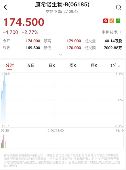 智通财经APP获悉,大摩近日发布报告表示,目前估计康希诺生物(06185)疫苗的成功率在60%;预计其疫苗将在今年年底或明年年初获批。该行大幅上调其目标价,从102港元升至258港元,维持“增持”评级。该股此前自高位回落逾四成,近日早盘反弹逾5%,截至发稿,涨3%,报174.9港元,成交额6974.98万港元。