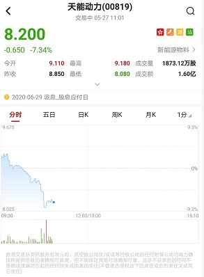 港股异动︱天能动力(00819)跌超8% 午后跌幅扩大暂现三连阴