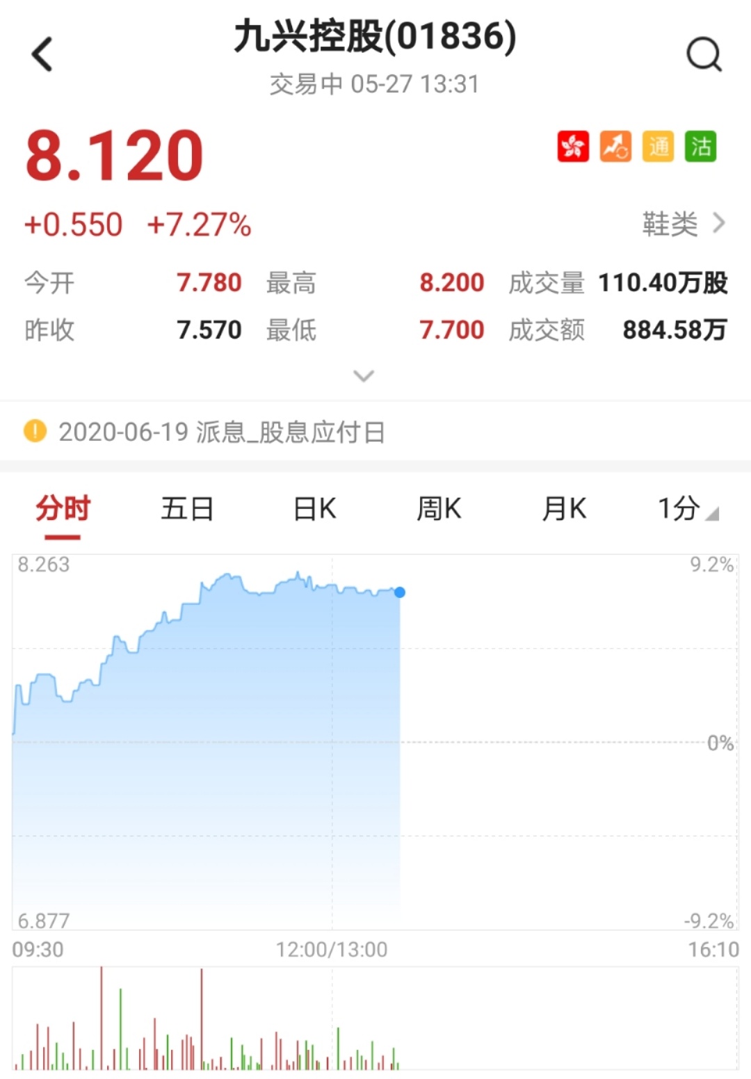 智通财经APP获悉,大摩发布研报称,受惠于Nike及奢侈品牌开拓运动鞋市场而带来的增长潜力,九兴控股(01836)拥有一般鞋类代工厂不具备的优势,Nike预期进一步扩大市场份额,这也将为九兴控股带来稳定收益增长及毛利率扩张。该行首予其“增持”评级,目标价为11.5港元。