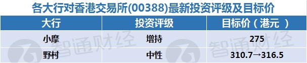 二、各大行对香港交易所(00388)最新投资评级及目标价