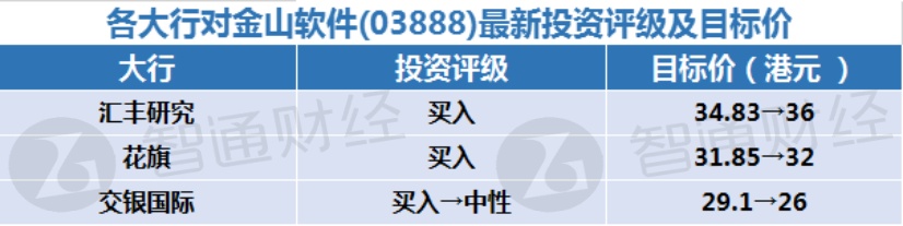四、各大行对金山软件(03888)最新投资评级及目标价