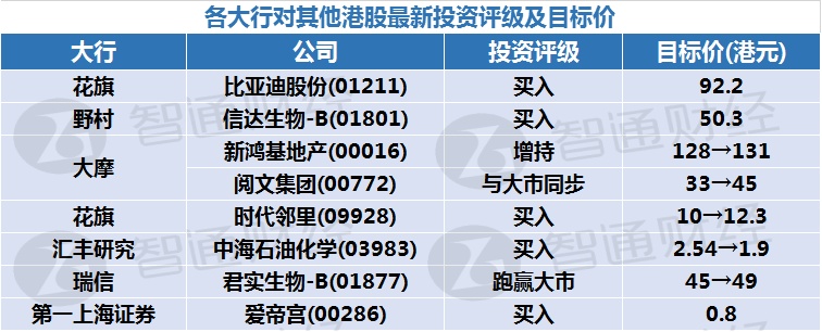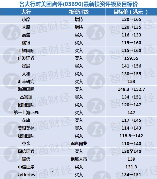 一、各大行对美团点评(03690)最新投资评级及目标价