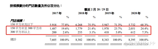 智通财经APP认为,2020财年之后滔搏的业绩增长可能要进入到一个新阶段,高速扩张之后,利用市场份额和渠道优势,实现收入和盈利的稳定增长。实际上除了门店数量增速放缓之外,从其门店规模可以看到大面积门店占比不断增加,规模化有利于降低门店运营成本,提升利润空间。