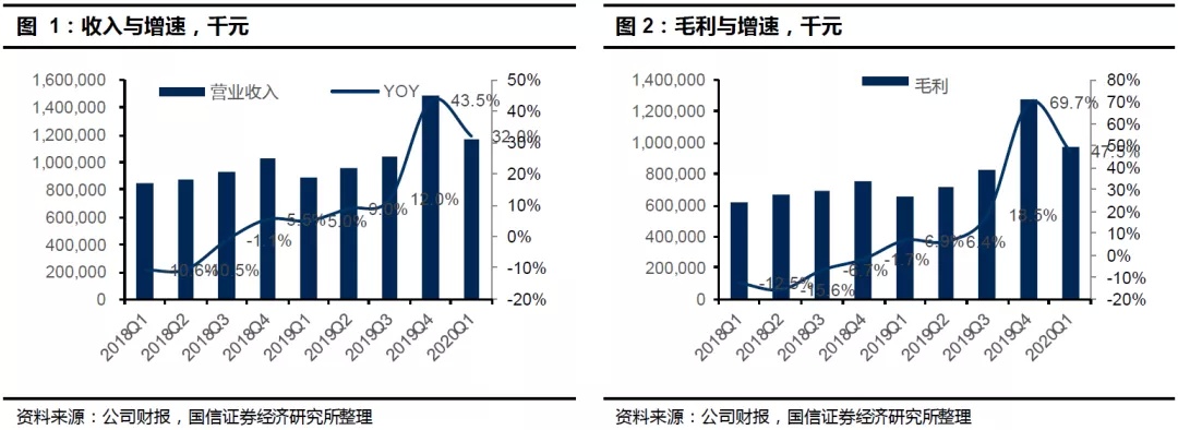 随着金山云(KC.US)的上市,2020年金山软件(03888)不再并表金山云的收入,我们将公司的收入、毛利进行重排。在公共卫生事件的影响下,一季度收入增速同比增长32%,毛利同比增长47%,净利润(持续性)达到3.6亿,好过市场预期。
