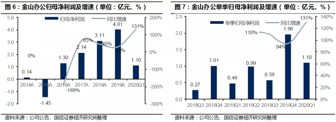 随着金山云的上市,2020年公司不再并表金山云的收入,我们将公司的收入、毛利进行重排。在公共卫生事件的影响下,一季度收入增速同比增长32%,毛利同比增长47%,净利润(持续性)达到3.6亿,好过市场预期。
