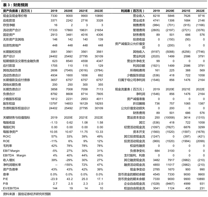鉴于游戏业务PC端受到公共卫生事件的催化取得良好业绩,且手游可期;办公软件获得了不菲的用户增长:我们以分部估值计算公司价值,分别给予游戏业务20年15倍PE(对应21年12倍),办公业务50倍PE(对应21年34倍PE),云业务5.5倍PS(对应21年4倍),得到公司合理估值约为30-32元,维持“买入”评级。