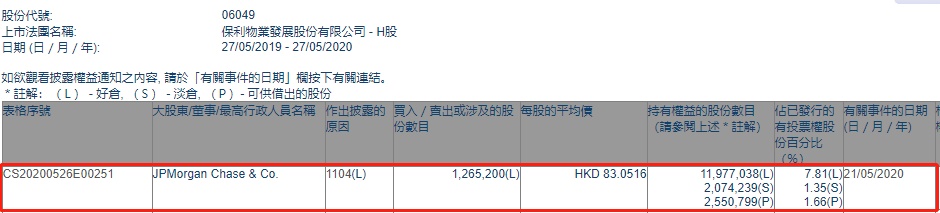 智通财经APP获悉,联交所最新资料显示,5月21日,小摩增持保利物业(06049)126.52万股,每股作价83.0516港元,总金额约为1.05亿港元。智通财经APP获悉,增持后最新持股数目约为1197.70万股,最新持股比例为7.81%。