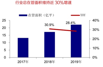 大、中型物管企业在管面积增速稳定,市场更为青睐。智通财经APP了解到, 在管面积增速格局中的头部效应已经在逐步显现,2019年行业总在管面积为22.2亿方,同比增长28.4%,维持在非常高的水平。其中大中型公司受益于地产母公司的有力支持,同时在三方项目获取及收并购上能力更强,进而保证在管面积维持高增速。数据显示,大型公司在管面积增速接近行业平均水平,中型公司增速快速提升达31%,而小型公司增长则略显乏力。