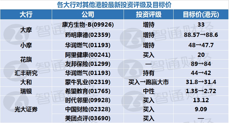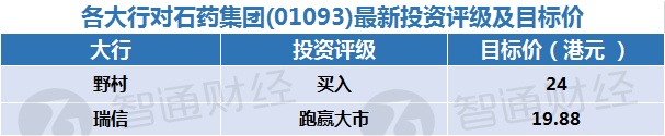 二、各大行对石药集团(01093)最新投资评级及目标价