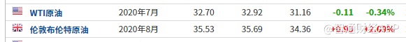 截至发稿,WTI原油跌0.34%,报32.70美元/桶。布伦特原油涨2.69%,报35.53美元/桶。