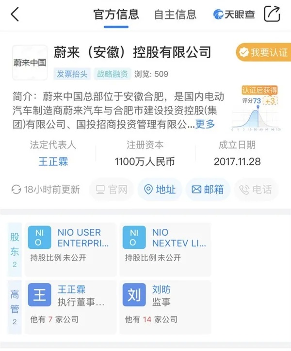 据了解,蔚来(安徽)控股有限公司是蔚来汽车与合肥市建设投资控股(集团)有限公司、国投招商投资管理有限公司以及安徽省高新技术产业投资有限公司等共同出资设立。而这意味着,以后蔚来汽车将是一个有地方国资背景的企业。