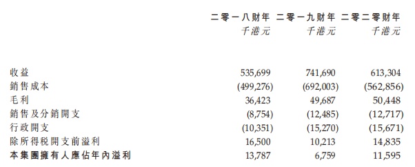 于2018财年、2019财年及2020财年,臻美集团的收益分别约为5.36亿港元、7.42亿港元及6.13亿港元,而年内毛利分别约为3642.3万港元、4968.7万港元及5044.8万港元。