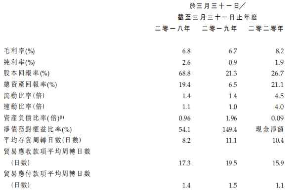 2019财年,毛利率随收益的增长一同增长。与2018财年约6.8%相比,公司在2019财年的毛利率保持相对稳定于约6.7%。而2020财年毛利率上升至8.2%。