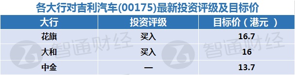 一、各大行对吉利汽车(00175)最新投资评级及目标价