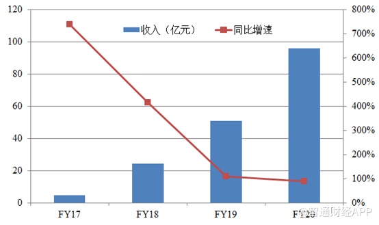 智通财经APP观察到,2017至2020财年,阿里健康收入分别达到4.75亿、24.43亿、50.96亿和95.96亿元,同比增速分别达到739%、414%、109%和88%,年复合增长达到172%,从这个角度看,阿里健康过去的业绩增长无疑的高速的。