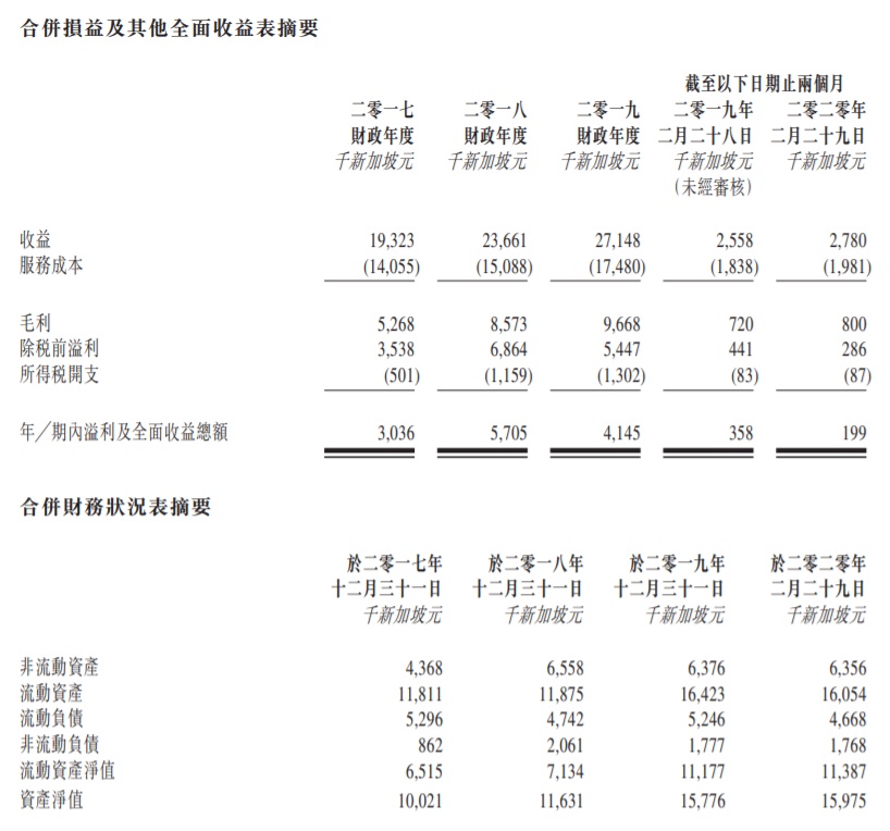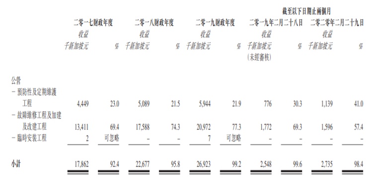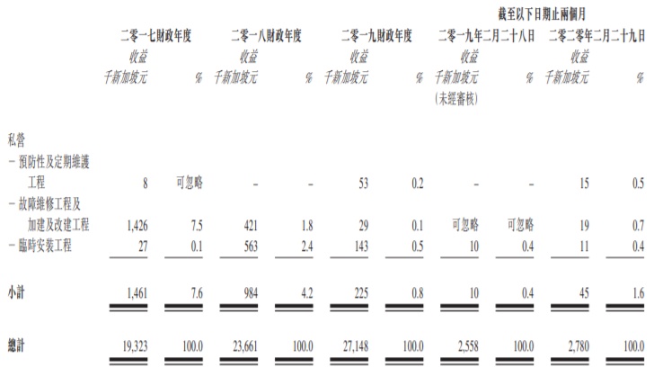 在招股书中,该公司也提示了自身的风险点。其大部分收益来自少数客户;其大部分收益来自新加坡公营综合屋宇装备项目;其收益主要来自综合屋宇装备,其客户的订单并非经常性的;任何重大成本超支可能对其业务营运及财务表现造成重大不利影响;综合屋宇装备合约项下工程订单价值可能于各期间大幅波动;未能重续或吊销或注销该公司任何现有许可证及注册可能会对其营运及财务表现造成重大影响。