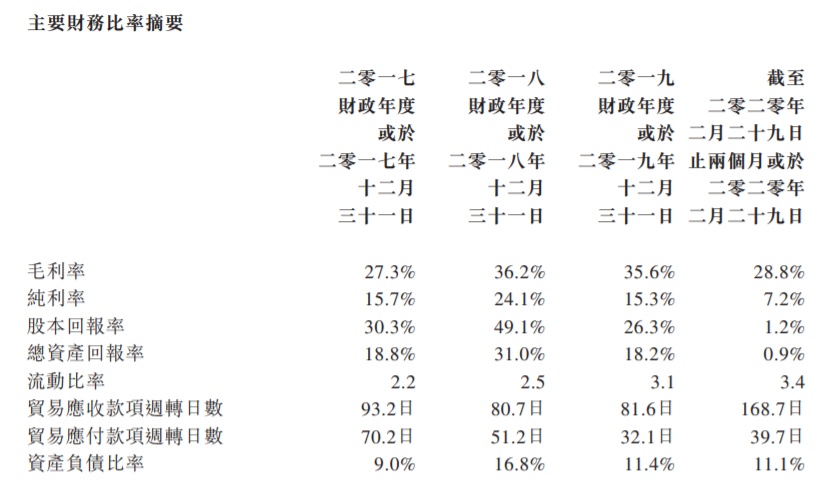 于2017财政年度、2018财政年度、2019财政年度各年及截至2020年2月29日止两个月,该公司最大客户占总收益的百分比分别为约42.1%、39.4%、44.4%及39.4%;同期,五大客户合计分别占约95.7%、92.7%、95.5%及93.3%。于业务过程中,可能不时向客户采购分包服务或若干行政服务或项目中所用材料及耗材的款项。