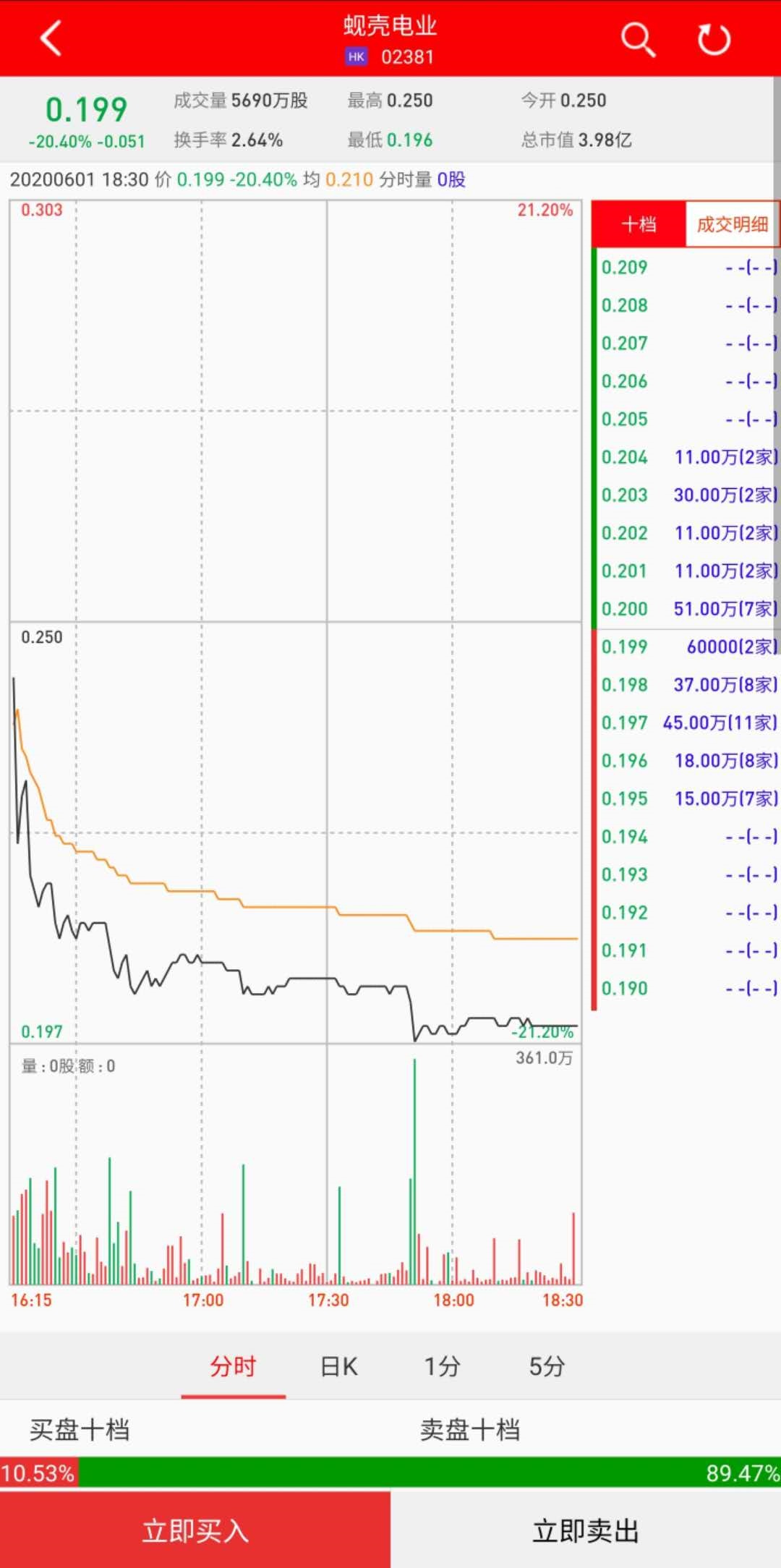 智通财经APP获悉,蚬壳电业(02381)将于6月2日挂牌,利弗莫尔证券资料显示,截至暗盘收盘,报价为0.199港元,较招股价0.25港元下跌20.40%。每手10000股,不计手续费,每手亏510港元。