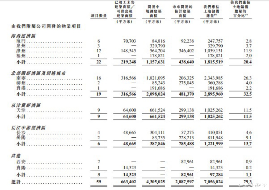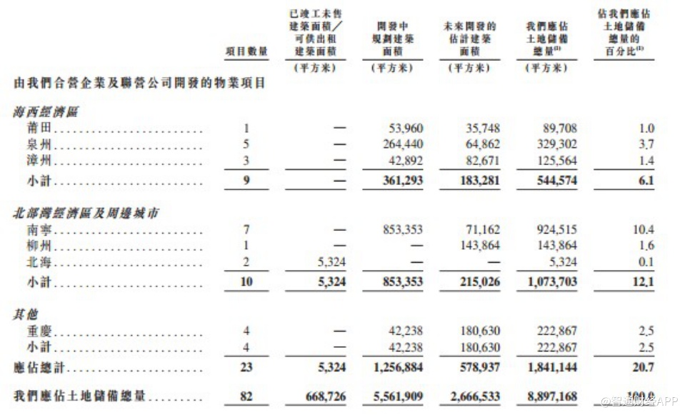 据公司首次上市申请招股书显示,截至2019年9月30日,公司拥有69个开发项目(具体如下)。最新招股书显示,截至2020年2月29日,拥有82个由附属公司以及合营企业及联营公司开发且处于不同开发阶段的物业开发项目。