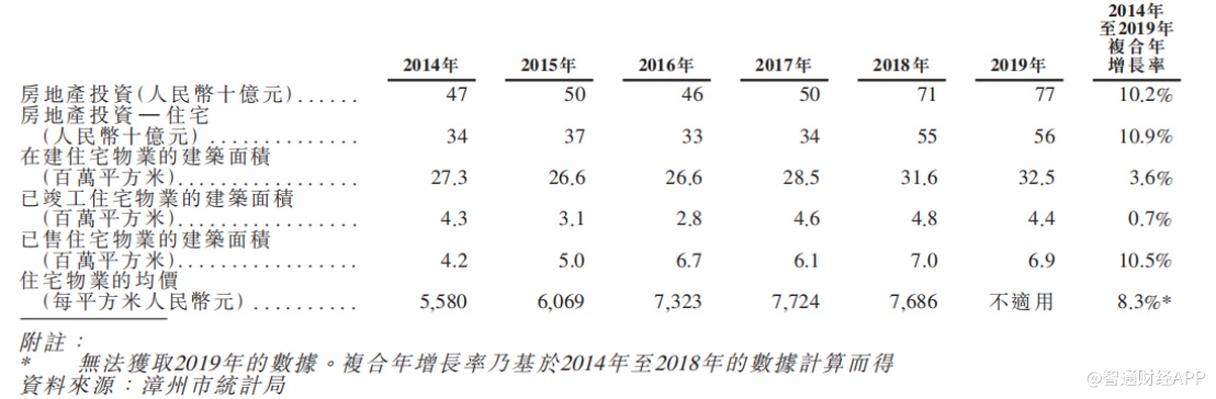 以大唐地产在海西经济区重点布局的漳州为例,由于毗邻厦门获得厦门市场外溢需求,漳州已售商业住宅物业的建筑面积从2014年的420万平方米增加至2019年的690万平方米,复合年增长率为10.5%。
