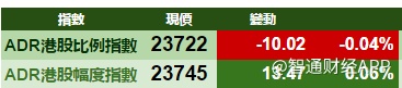 智通财经APP获悉,美股6月开局上涨,但港股ADR指数全日无方向,按比例计算,收报23,722点,跌10点。