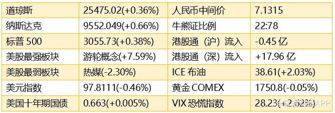 1、周一,美国制造业活动由11年低位反弹,美股低开93点后一度跌超150点,随后收复失地靠稳。截至收盘,标普500指数涨11.40点,涨幅0.38%,报3055.73点;纳指涨62.20点,涨幅0.66%,报9552.05点;道指涨91.90点,涨幅0.36%,报25475.02点。港股ADR指数全日无方向,按比例计算,收报23,722点,跌10点。