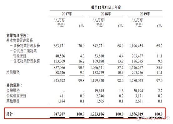 相比而言,公共及工业物业、住宅物业的平均管理费用则明显较低,且来自卓越集团的公共及工业物业均价更低。这就解释了卓越商企近几年业务变化的情况,在物业服务板块中,2017年至2019年,商务物业收入占比77.3%、79%及75.9%,而公共及工业物业收入占比分别为4.7%、5.1%及12.7%,住宅物业收入占比则为17.9%、15.9%及11.2%。