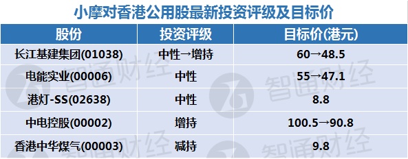 智通财经APP获悉,小摩发表研究报告,列出对香港公用股的最新投资评级及目标价: