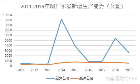 据广东省统计局数据显示,2011-2019年期间,广东省新增公路建设公里数分别于2014及2018年实现两次高峰。然而,从整体数据表现来看,整个广东省的新建公路公里数呈逐渐缩小趋势。