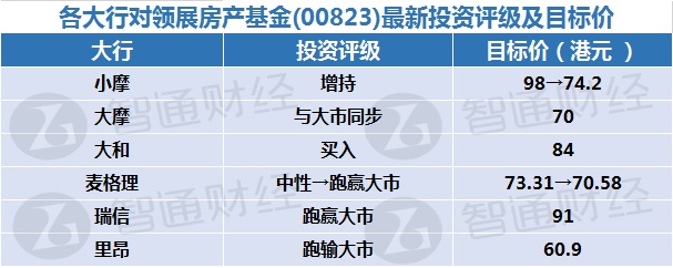 二、各大行对领展房产基金(00823)最新投资评级及目标价