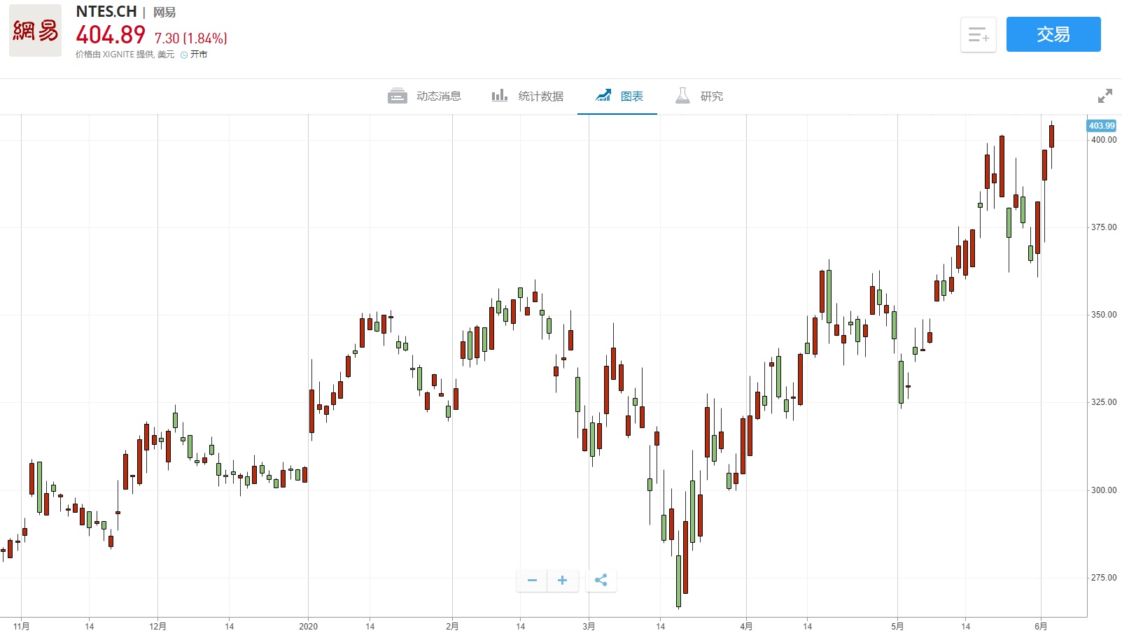 智通财经APP获悉,周二(6月2日)美股盘初,网易(NTES.US)盘中股价创历史新高,截至北京时间21:55,该股涨1.85%,报405.94美元。