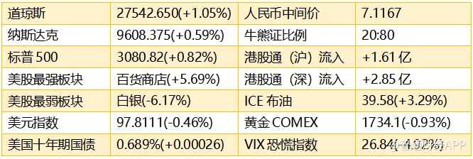 1、隔夜美股市场聚焦经济重启,以及针对卫生事件药物出现利好消息,抵消美国大规模示威活动的影响,截至收盘,标普500指数涨25.10点,涨幅0.82%,报3080.82点;纳指涨56.30点,涨幅0.59%,报9608.37点;道指涨267.60点,涨幅1.05%,报25742.65点。值得注意的是,标普500指数较其在3月23日创造的近期低点2191.86点已反弹超过40%,较其近期历史最高点差距为9.2%。港股ADR指数也向好,按比例计算,收报24,238点,升243点或1.00%。