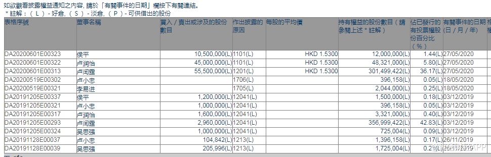 智通财经APP获悉,基于对公司发展前景的坚定信心,以及目前公司股票的明显低估,金邦达宝嘉(03315)执行董事卢润怡和首席执行官侯平已于5月27日分别增持公司股份4500万股和1050万股(共5550万股),每股作价均为1.53港元,总耗资8491.5万港元,增持后卢润怡及侯平持股比例分别增至5.80%及1.44%。
