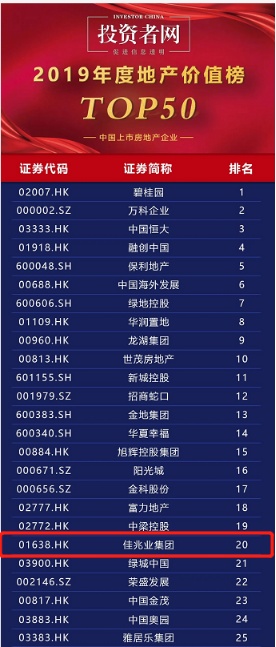 智通财经APP获悉,6月3日,由国内财经媒体《投资者网》发布的“2019年度地产价值榜50强”正式揭晓。佳兆业集团(01638)凭借不断攀升的综合实力及稳步增长的各项财务指标,位列第20位,彰显出资本市场对公司发展的高度认可。