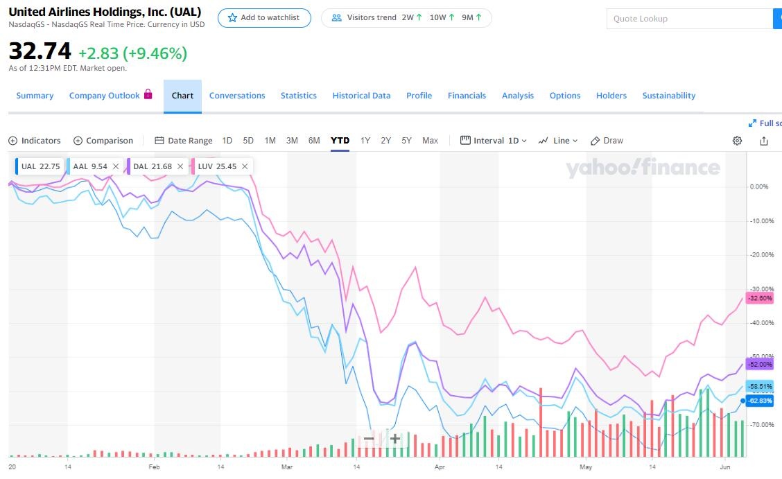 自3月中旬低点以来,Azul截至目前已经累涨超110%;精神航空累涨近140%,阿拉拉斯加航空累涨超100%,美联航累涨近90%,美国航空虽然同期累跌1%以上,但4月3日以来两个月也累涨了将近27%。达美航空同期涨约3%,两个月来累涨25%,西南航空同期累涨将近4%,两个月来累涨将近20%。