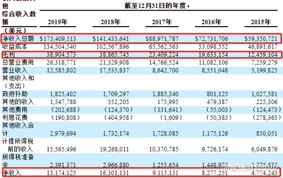 财报显示,2019年泰盈科技全年净收入为1.73亿美元,较2018年同期的1.41亿美元上涨22%; 毛利由2018年的3886.5万美元上涨到3890.4万美元,同比增长0.1%;