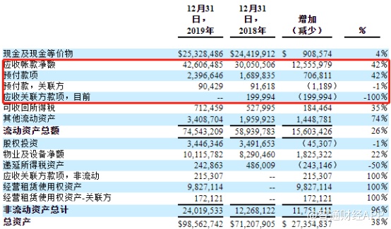 从泰盈与客户的关系来看,泰盈与客户公司之间的议价能力较弱。财报数据显示,2019年,公司应收账款净额达到239.66万美元,占公司当期净利润的18.2%,同比增长42%。与此同时,公司应收关联方账款降至零。这说明2019年整体应收账款均来源于下游客户,说明公司当期收账能力出现相对下滑。