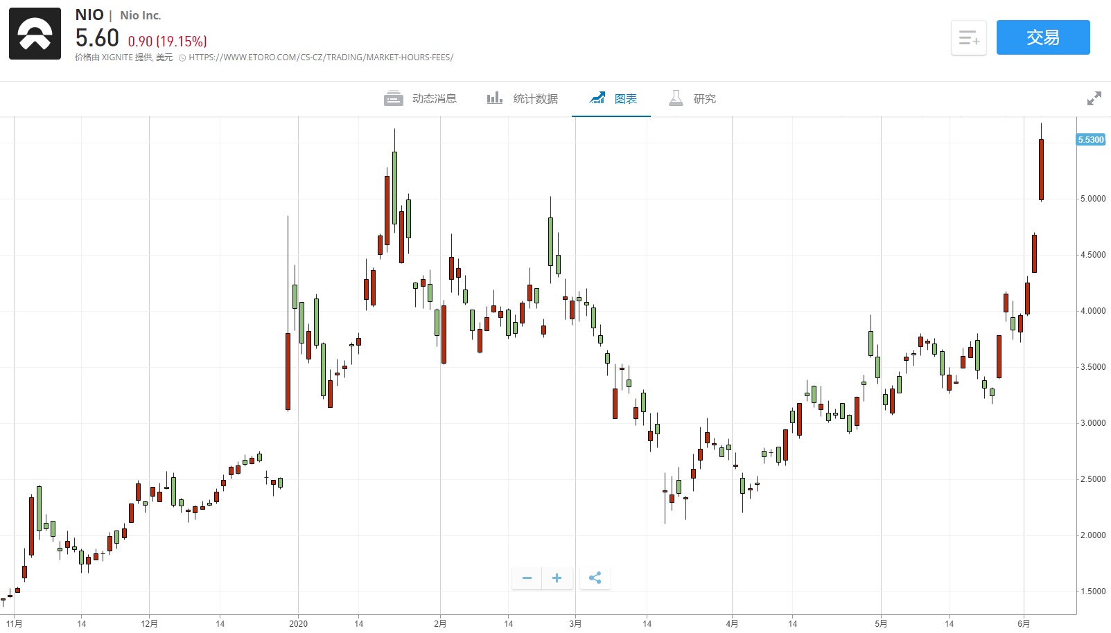 智通财经APP获悉,6月4日(周四)美股盘前,截至16:08,蔚来(NIO.US)涨4.46%,报5.85美元。