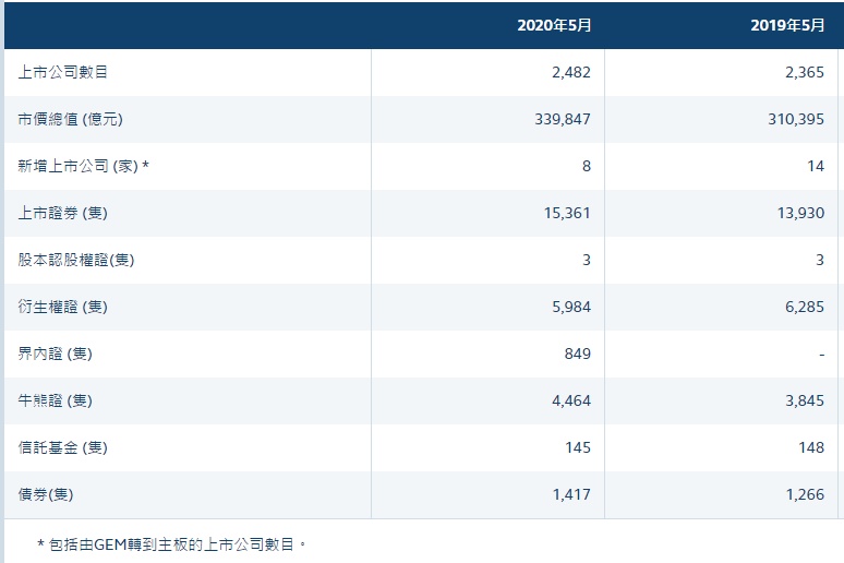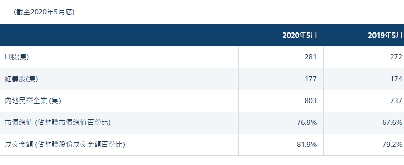 2020年5月,港股市场平均每日成交金额为1,147亿元,较去年同期的974亿元上升18%。首五月的平均每日成交金额为1,159亿元,较去年同期的1,009亿元上升15%。