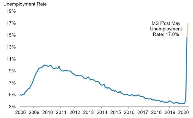 大摩预测,5月份失业率将从14.7%升至17.0%,高于普遍的预期。该行认为,在本周期中,失业率可能会达到峰值。实际上,包括因其他原因而失业的人在内的影子失业率要高得多(4月份接近25.5%)。由于组成和分类的偏差,影子失业率会有多高还存在相当大的不确定性。