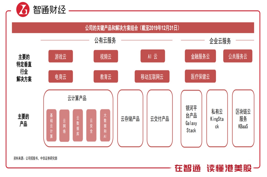 金山云成立于2012年,是金山软件分拆出来单独上市的板块,金山云主要提供公有云服务、企业云服务以及AIoT云服务。公有云产品包括云计算、电商云及教育云等,企业云产品包括金融服务云及医疗保健云等,AIoT解决方案通过与小米和其他第三方设备供应商的合作,包括云平台软件和AIoT设备提供云服务。