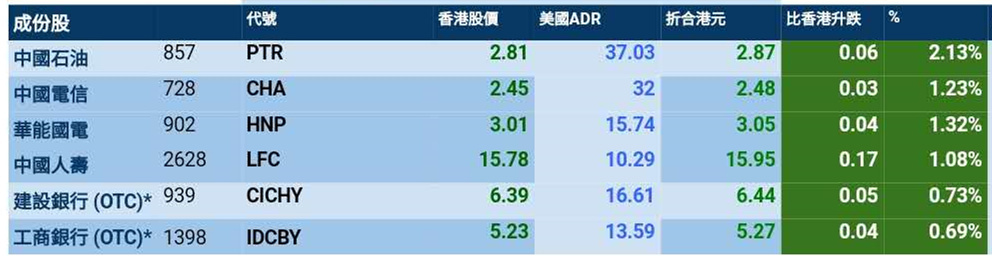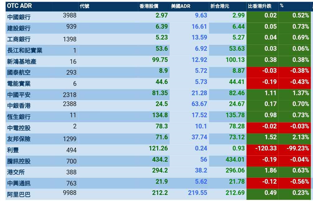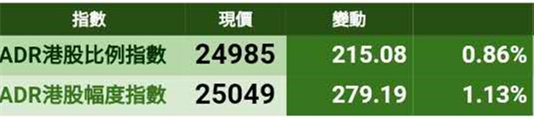 智通财经APP获悉,周五美股大幅反弹,刺激港股ADR指数全日向好,按比例计算,收报24985点,涨215.08点。